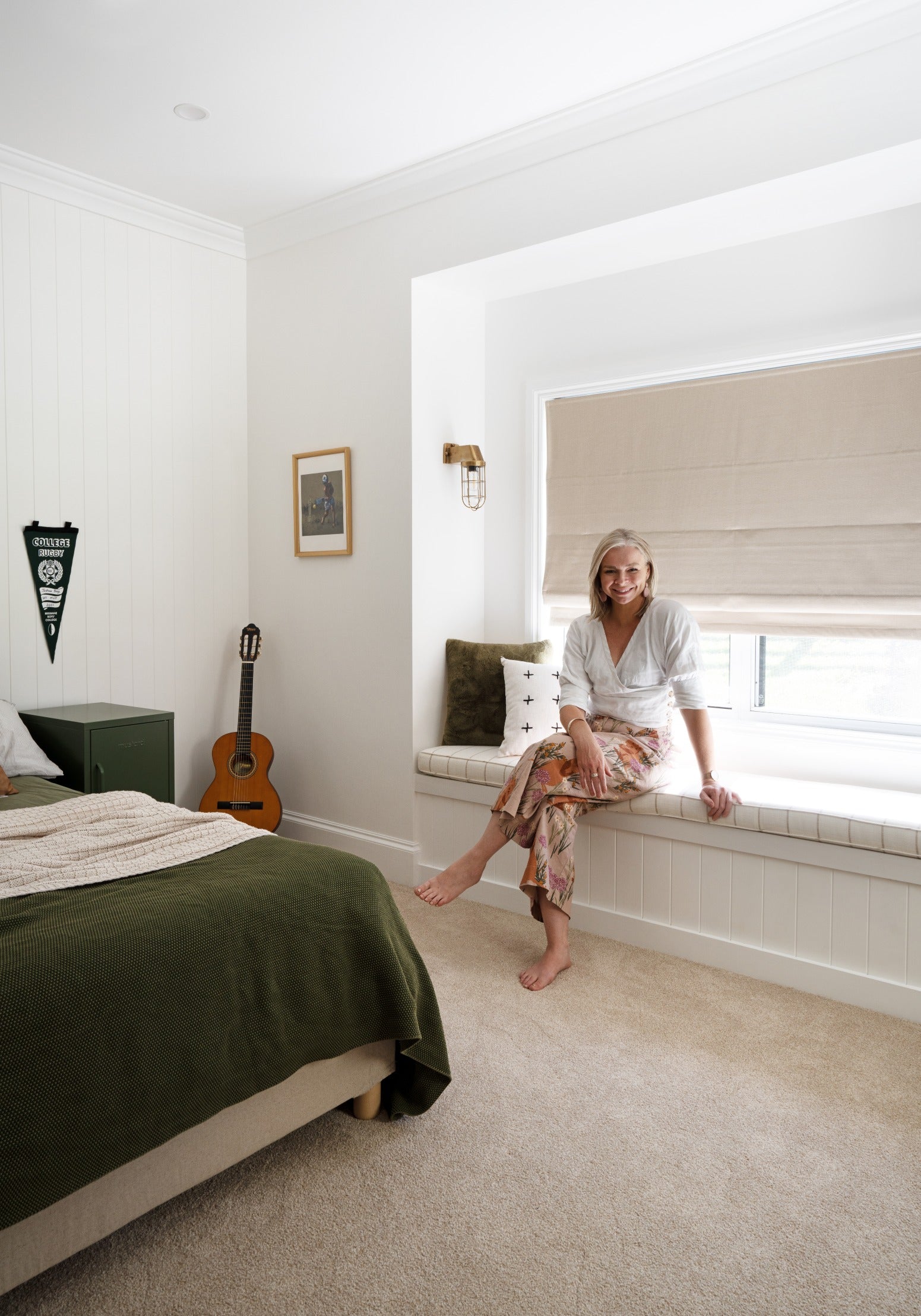 The home boasts some of Rachael’s signature styles including a welcoming front porch with classic linear weatherboard cladding mixed with board and batten elements, charming custom balustrading, timeless cedar shingles, textural stone cladding and our popular Ivy Willow Front Door with matching Sidelite Panels.