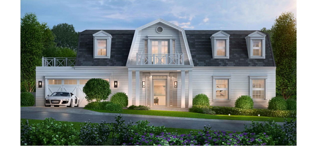 The distinctive navy blue and white exterior palette, coupled with a central gambrel roof pitch and dormer windows, gives our Classic Cape Cod build a grand and stately presence from the street.